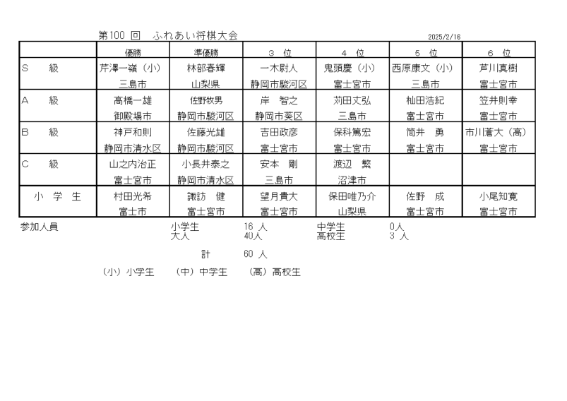 ふれあい将棋大会結果発表